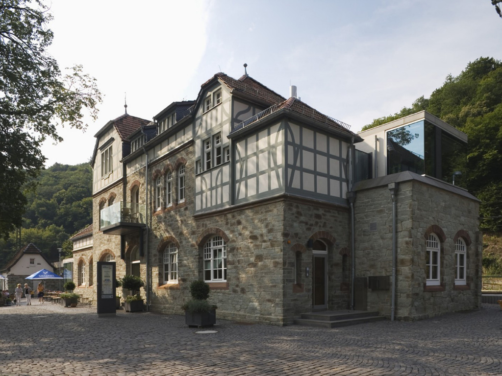Das Neue wagen: Neue Raumfolgen entsprechend dem Duktus des Gebäudes wurden eingefügt. Neue Anbauten aus Glas und Sichtbeton ergänzen dementsprechend die Gebäudestruktur.