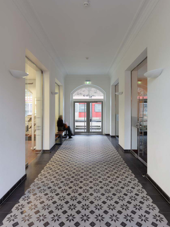 Ein Bürgerbüro mit Mobilitätsberatung, ein Cafe mit Außenbewirtschaftung sowie ein Restaurant im Obergeschoss waren einzufügen, Technikräume der DB AG zu belassen.