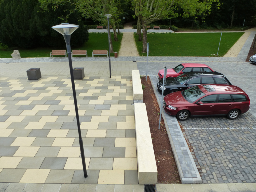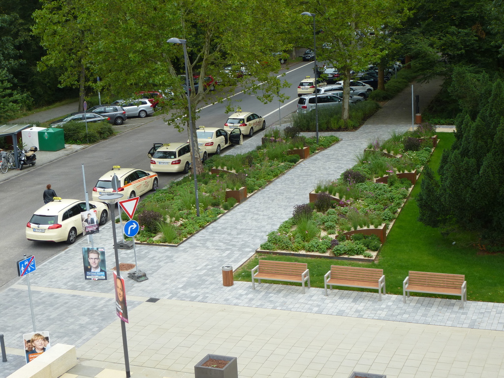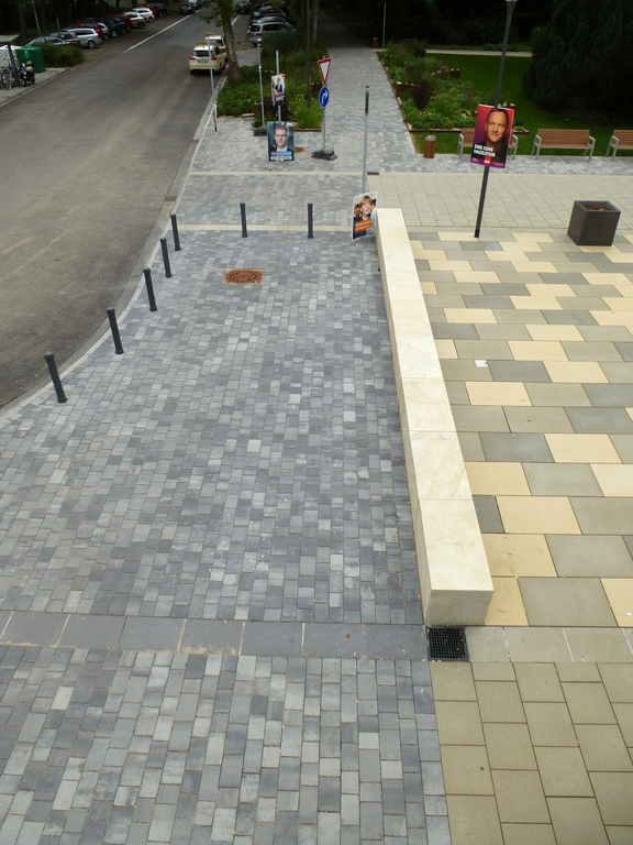 Im Rahmen des Förderprogramms “Soziale Stadt” wurden der asphaltierte Bahnhofsvorplatz mit seiner ungeordneten Zufahrt zum DB AutoZug und der desolaten Fahrbahn zum Busbahnhof zusammen mit dem verwilderten Park und den Waldwegen zum Stadtquartier West neu gestaltet. Der Platz vor dem Empfangsgebäude bleibt den Fußgängern und einer Außengastronomie vorbehalten. Staudenbeete mit zehn markanten und mit Gräsern bepflanzten Hochbeeten aus Cortenstahl flankieren den Zugangsweg. Ein Brunnen aus den 20er Jahren wurde denkmalgerecht instand gesetzt.
